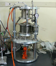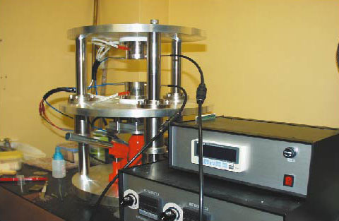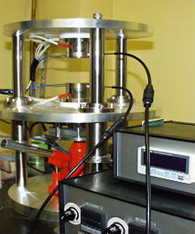 - 上下に真空吸着付き。軽量化のため、ベースはアルミ材を使用。温調はサイクル制御2系統。