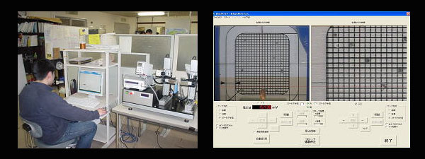 - 移動したい測定点をモニター上でクリックすると、その位置にプローブが動き、表裏のプローブが試料に接触した時点で電圧を測定・記録することができます。
