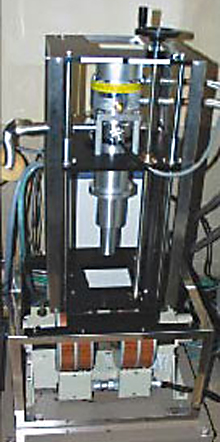 - 上下に真空吸着付き。軽量化のため、ベースはアルミ材を使用。温調はサイクル制御2系統。
